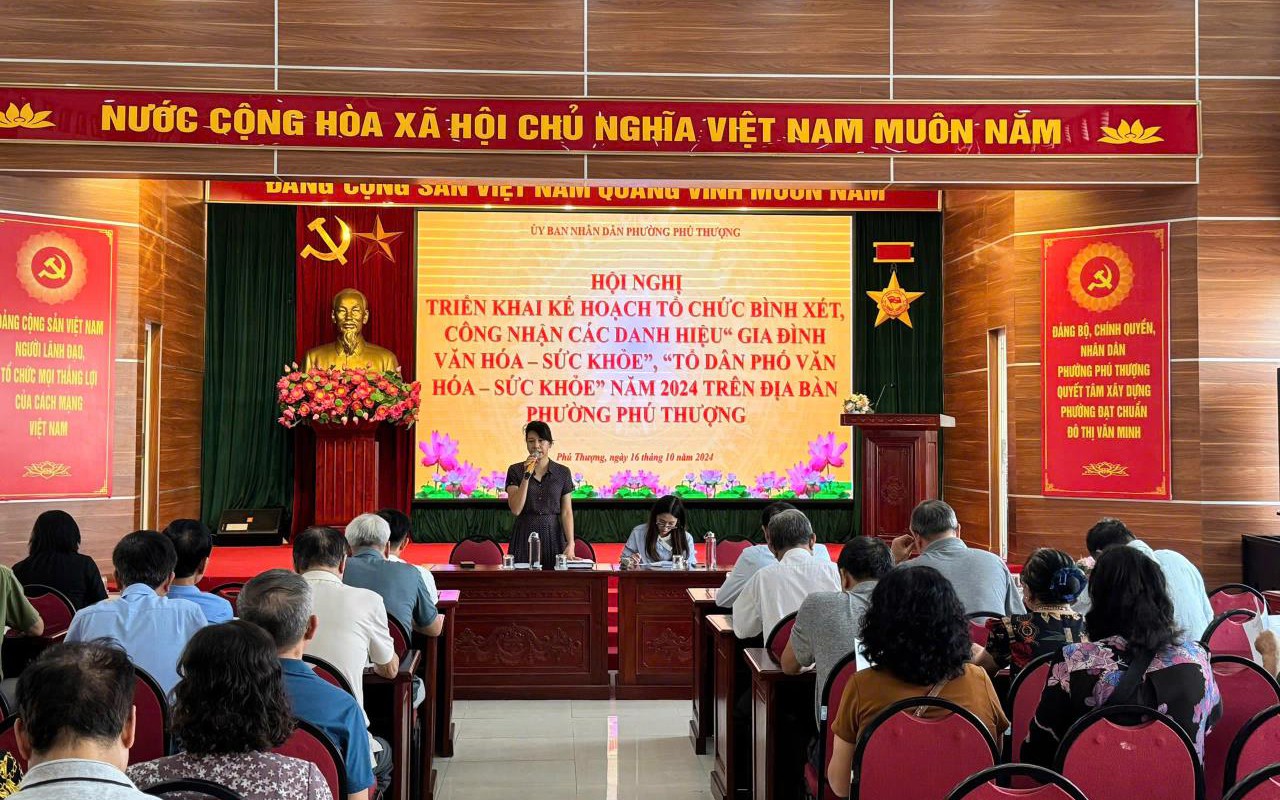 HỘI NGHỊ TRIỂN KHAI KẾ HOẠCH BÌNH XÉT, CÔNG NHẬN CÁC DANH HIỆU “GIA ĐÌNH VĂN HÓA - SỨC KHỎE”, “TỔ DÂN PHỐ VĂN HÓA - SỨC KHỎE” NĂM 2024 TRÊN ĐỊA BÀN PHƯỜNG PHÚ THƯỢNG